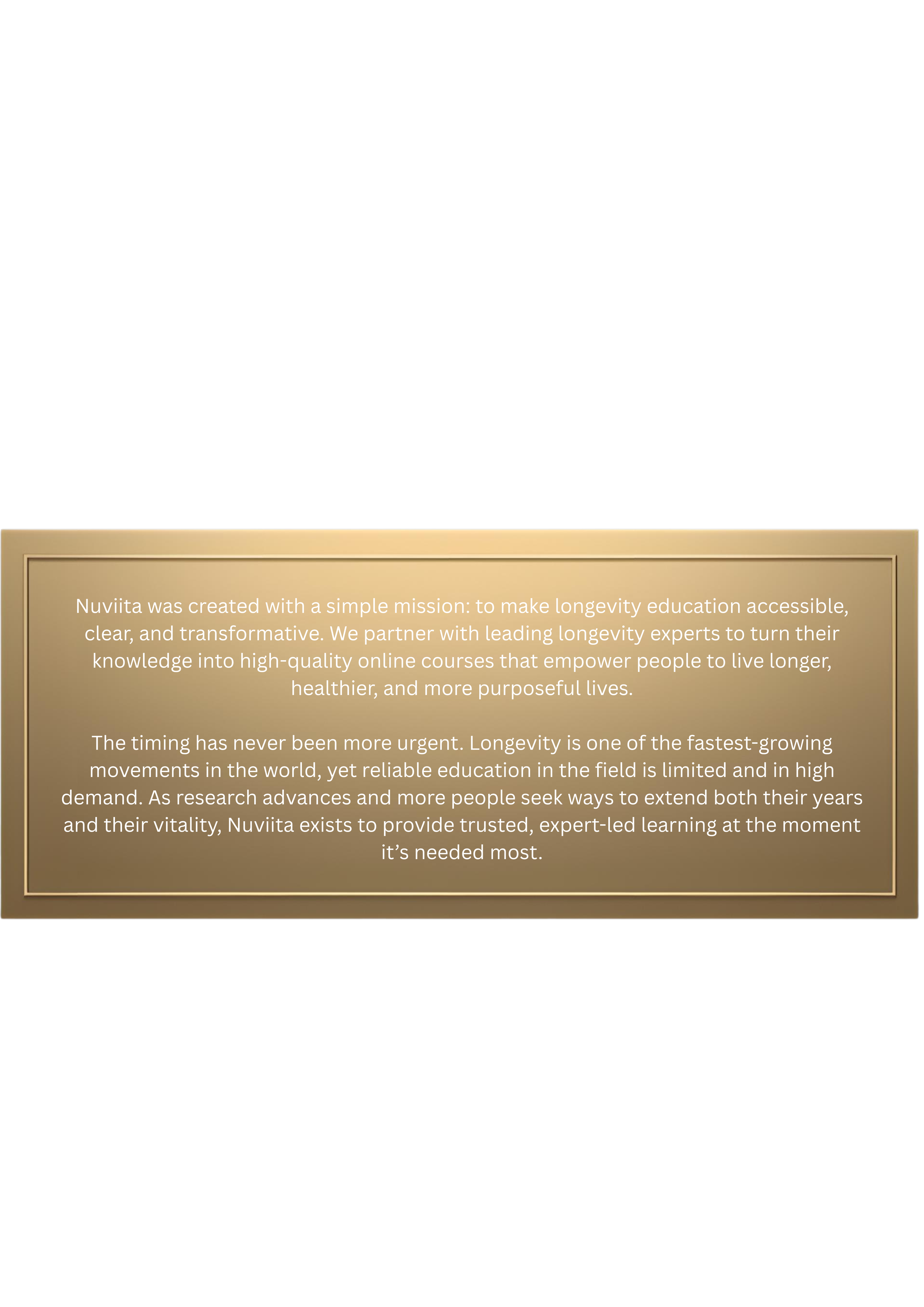 We exist to reimagine longevity education, shaping courses with the world’s foremost longevity experts whose wisdom transcends time”